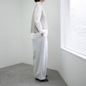 デザインは、どんな襟元とも相性の良いベーシックなクルーネックを採用。コンパクトな肩のラインと、程よくゆとりを持たせた身幅が、大人のリラックスしたシルエットを描きます。