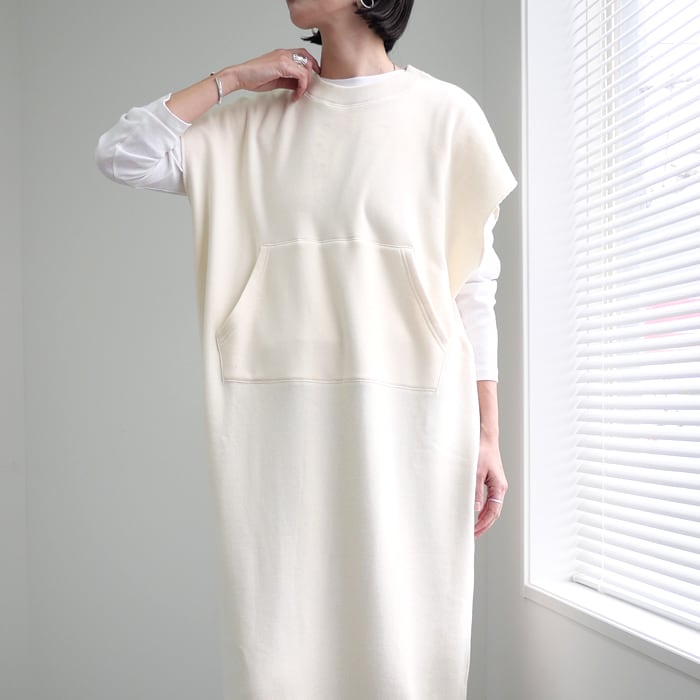 柔らかなフレンチテリーで仕立てたスリーブレスワンピース。