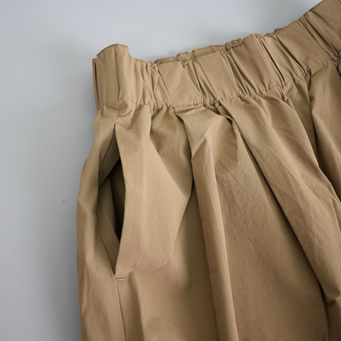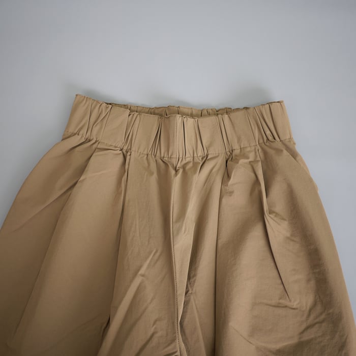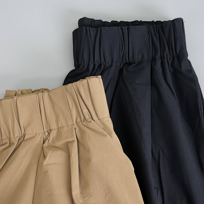 ウエストは、安定感のある太ゴム仕様を採用。一日中穿いていてもストレスを感じさせない快適さはもちろん、トップスをインした際にもウエスト周りがもたつかず、スッキリと洗練された印象を与えてくれます。