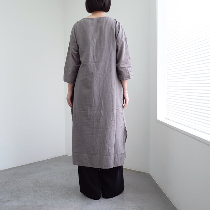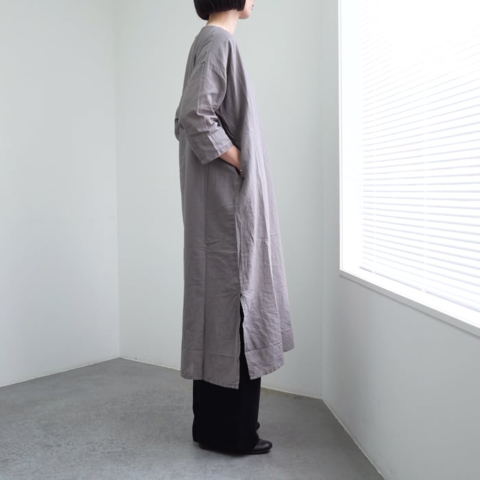 空気を含んだ柔らかさと、清涼感。コットンリネンの製品染めワンピース