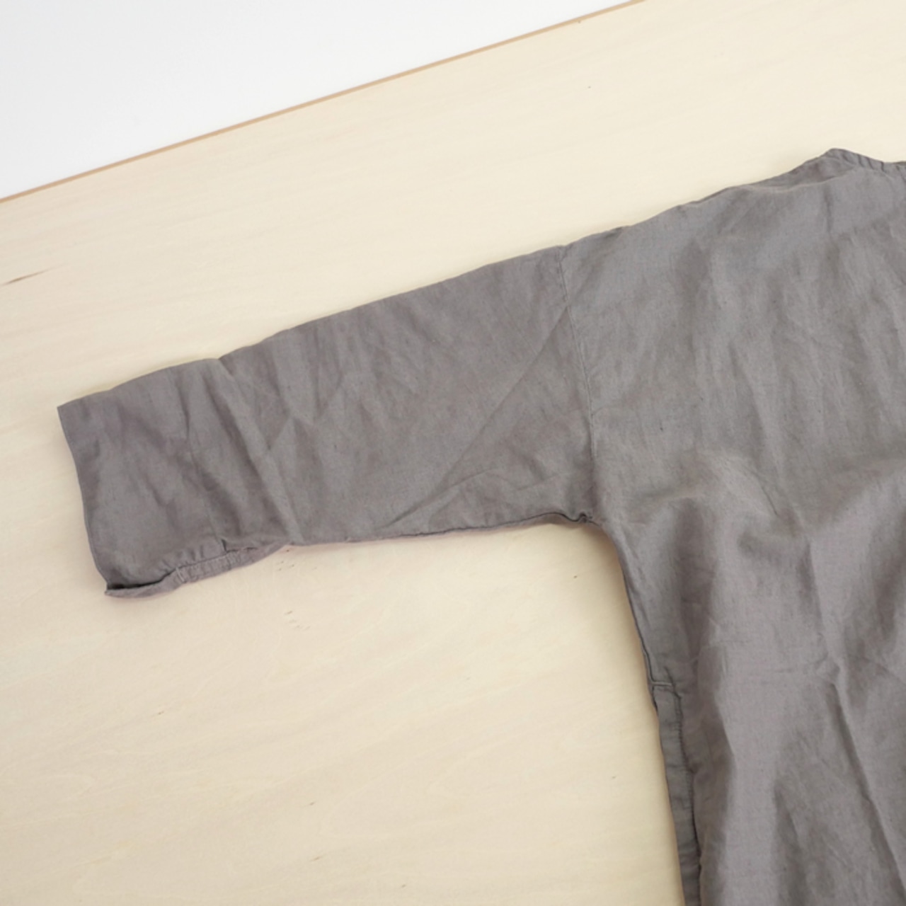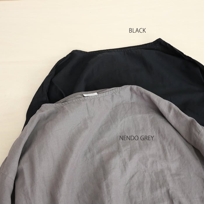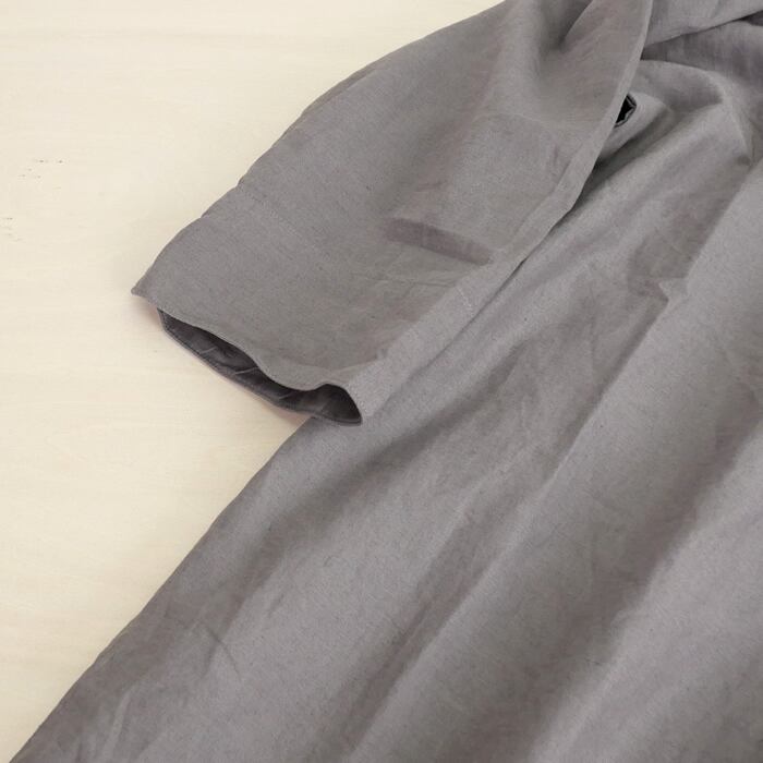 手間を惜しまず施された製品染めによる、奥行きのある表情が印象的です。この工程を経ることで、生地がふっくらと柔らかく肌に馴染み、袖を通した瞬間から長年愛用してきたような、優しく心地よい肌触りを感じていただけます。リネン特有のドライな質感とコットンの柔らかさが溶け合い、汗をかいても肌にまとわりつかないため、春夏シーズンも常に清々しく過ごせます。