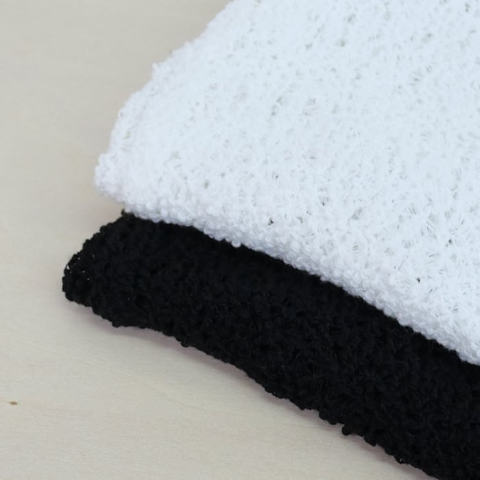 素材:ポリエステル73% コットン25% ポリウレタン2%(本体)、レーヨン70% コットン30%(リブ部分)