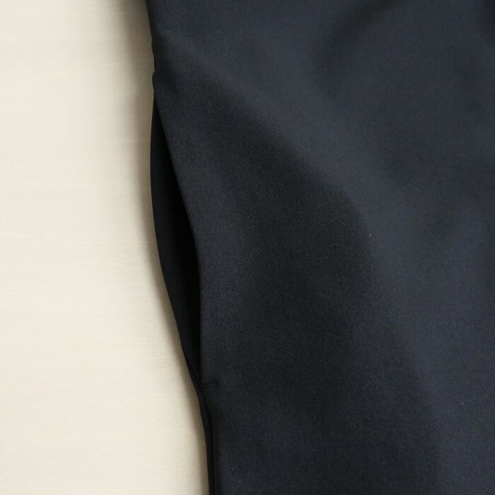 生地には、CONTEMPOを象徴するスラックスでも愛されている、高品質な2WAYストレッチ素材を採用。伸縮性のある糸を丁寧に平織りにした生地は、程よい厚みと芯のあるハリを備えており、肌に触れるたびその上品な質感を実感していただけます。