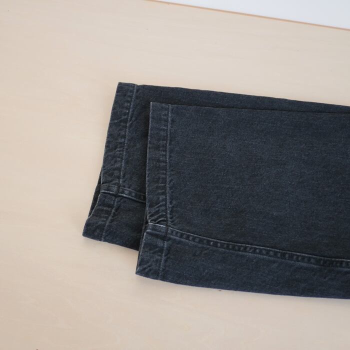 スビンコットンを贅沢に使用し、独自の質感で織り上げたブラックデニムのベイカーパンツ