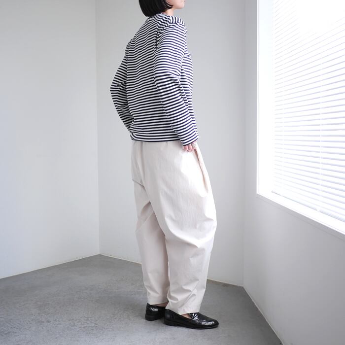 無駄を削ぎ落としたシンプルなクルーネックのデザインは、性別を問わず楽しめるユニセックス仕様。季節を問わずワードローブの主役としてはもちろん、インナーとしても。着るほどに風合いが育ち、自分だけの定番へと形を変えていく、誠実なものづくりが息づく一着です。
