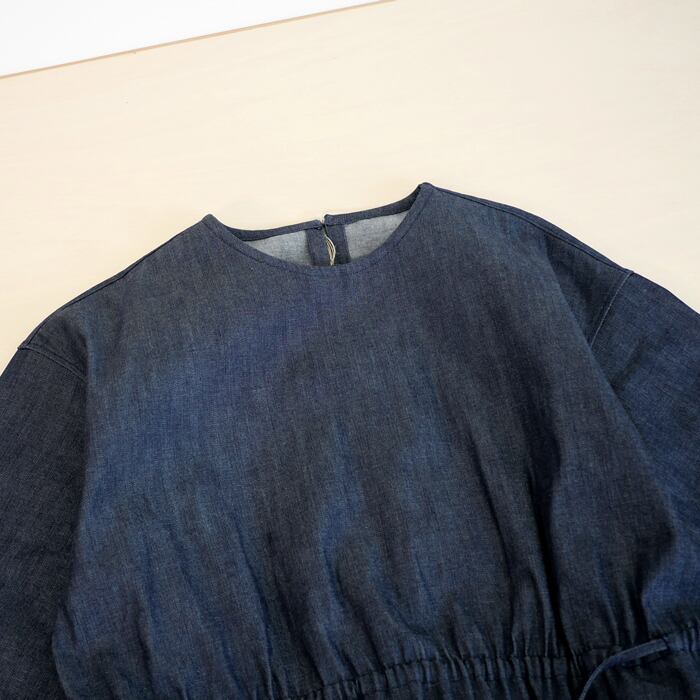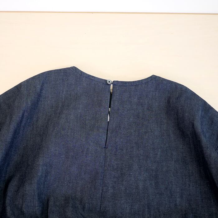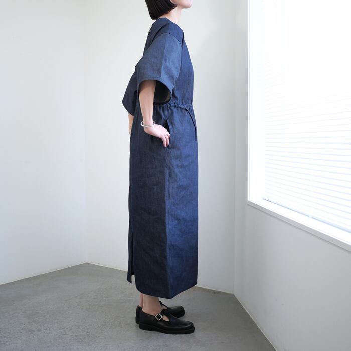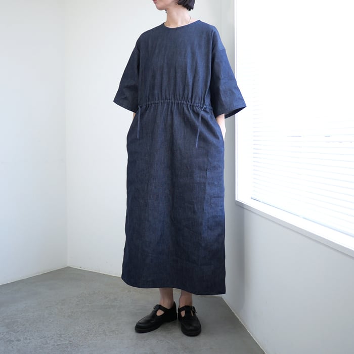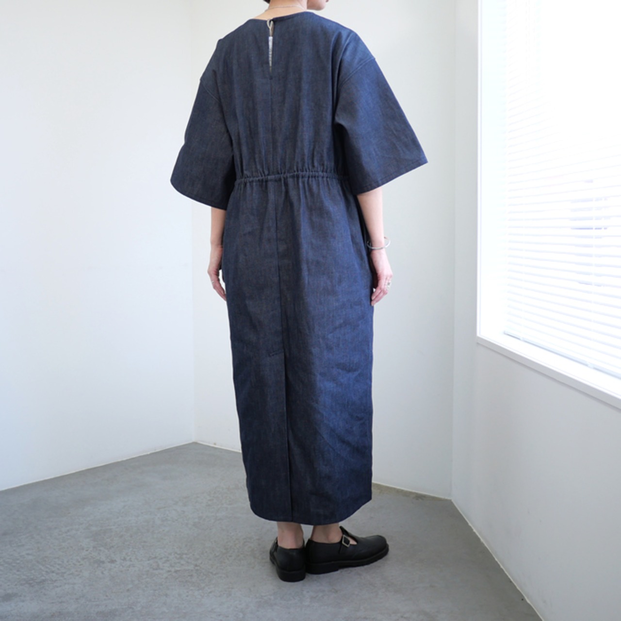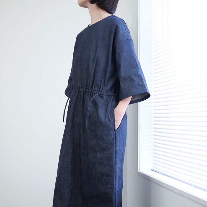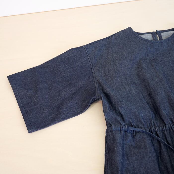 腕まわりを優しくカバーする5分袖のデザインは、一枚での着用はもちろん、季節の変わり目にはカーディガンやジャケットとのレイヤードにも。日常の風景に溶け込みながら、着る人の個性を静かに引き立ててくれる、誠実なデニムワンピースです。