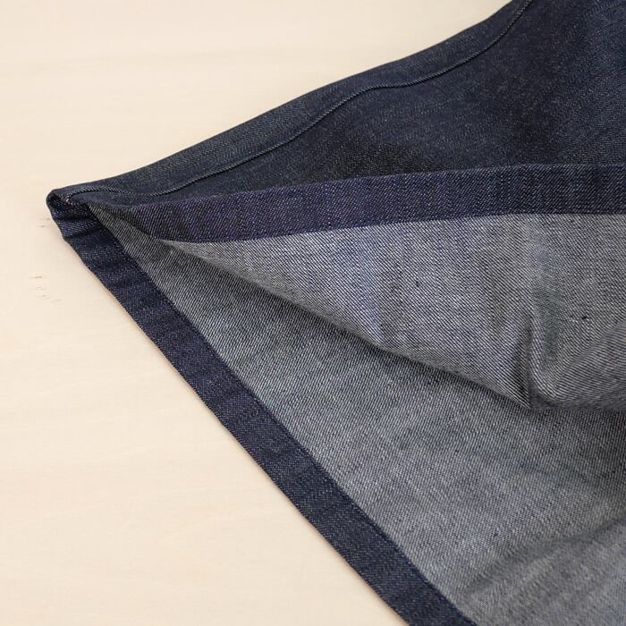 程よい厚みの8.5オンスライトデニムを採用した、薄すぎず安心感のある絶妙な生地感が特徴。デニム特有のタフな風合いを残しながらも、身体の動きに合わせてしなやかに揺れる軽やかさを備えています。着込むほどに、そして洗うほどに自分だけの表情へと育っていくデニムの醍醐味を、日常の中で存分に愉しめます。