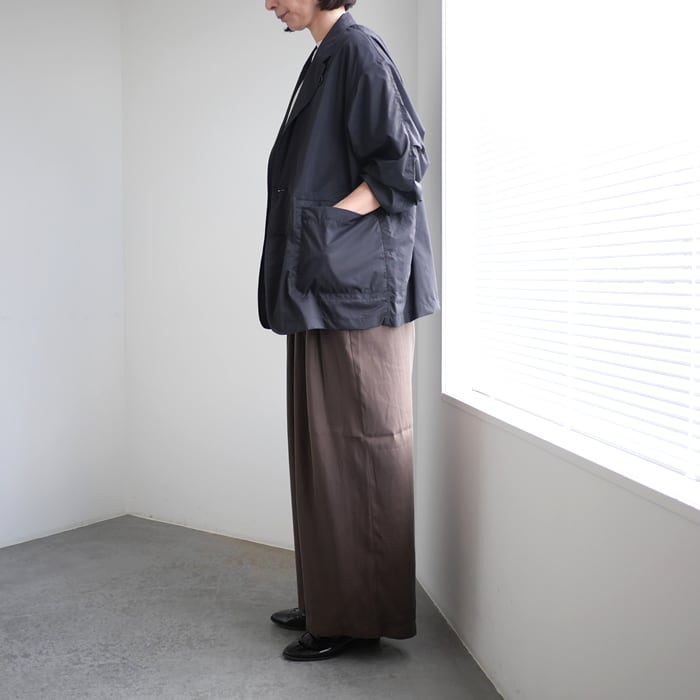 さらに、左フロントポケットを利用したパッカブル仕様により、コンパクトにまとめて持ち運びができるトラベル対応の仕立てに。同シリーズでのセットアップも可能で、出張や旅先、そして日常のあらゆる場面において、品格と機能性を同時に纏える、現代のスタンダードにふさわしい仕上がりです。