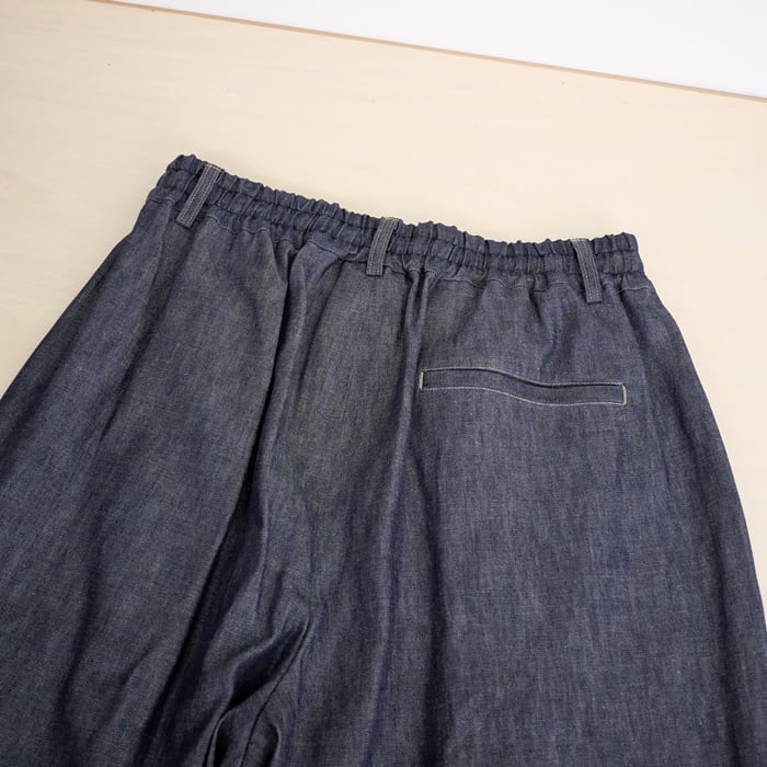 ウエストは総ゴム仕様に加え、内側のドローストリングで細かなフィット感の調整が可能。デニムのタフな風合いを愉しみながら、スウェットパンツのようなリラックスした穿き心地を叶えています。