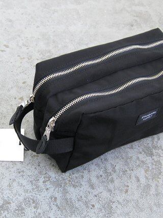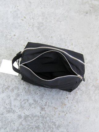 2つのスペースに分かれているスクエア型のマチ付きポーチ。ハンドルを付けているため、持ち運びにも便利なアイテムです。前後の仕切りにはゆとりをもたせ、入れたい荷物に応じて前後の容量を調整することが可能です。2つのスペースに分かれているため、細々としたガジェットやコスメなどを持ち運ぶのにも便利です。裏側にはアクリルコーティング加工を施しています。