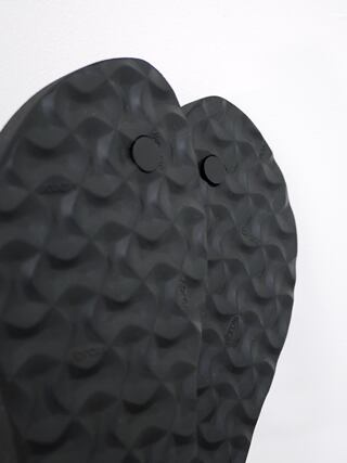 メキシコのタラウマラ族のワラーチサンダルをルーツに持つベアフットサンダル。アッパー部分をホールドするベルトには、高密度のナイロン素材を使用しオリジナルのバックルでフィッティング微調整が可能。軽くて屈曲性に富み、長時間の歩行でも足が疲れにくく快適です。雨天での着用でも浸水しにくく、水に強いといった特性も兼ね備えています。インソールには軽量かつしなやかな素材「I45」、アウトソールにはグリップ力と耐久性に優れたビブラム社製「TILE AIRSOFT」を採用。厚みのあるソールにテープ幅は15mmと、安定感のある履き心地を実現します。