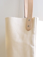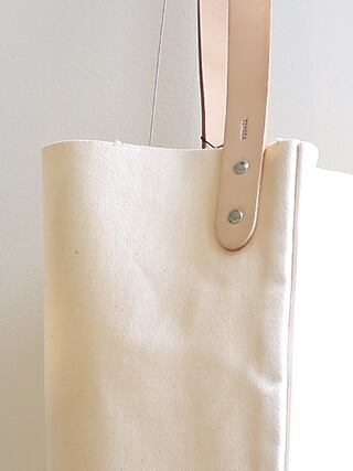 バゲットを入れるためのトートバッグ。 タンニン鞣しされたレザーのハンドルは、自然な風合いで使い込むほどに独特の色や味わいに変化します。