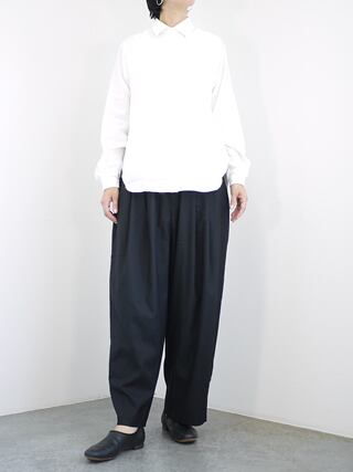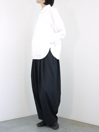 ヤエカ定番のオリジナルシャツ。ソフトタッチの着心地で飽きのこないデザインです。フロントボタンはスナップボタンで脱着しやすく、デザインポイントになっています。サイドのポケットディティールで拘りのデザインをプラス。リラックスできるフォルムに作られたシルエットも絶妙です。