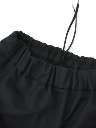 経糸に光沢のないポリエステル糸、緯糸に軽量な中空ポリエステル糸を使用、生地の段階でワッシャー風のシワ加工を入れた綾織生地。少し撥水機能もあり、軽量で扱いやすく丈夫で通年使える生地感です。腰周りはゆったりと、裾に向けてスッキリ細身のシルエット。どんなトップスにも合わせやすいデザインです。