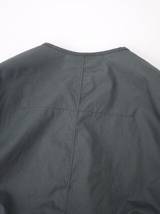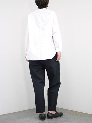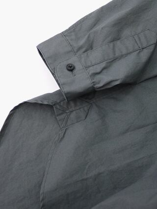 コーミングした綿を使用したやや高密のブロード生地を使用したノーカラーシャツ。ゆとり感のある定番シャツ。しわにもなりにくく、通年で着用できる一着です。