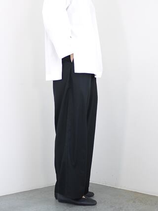 ゆったりとしたイージーな着心地の2タックワイドパンツ。ウエストは太ゴム仕様でトップスインした時のスッキリと見えます。色々なスタイリングに応用できる、着回し力抜群のパンツです。