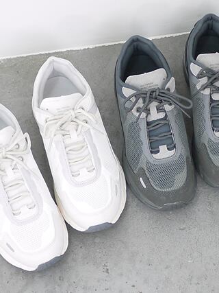 学生靴の丈夫さを引き継ぎながら、ミニマルな佇まいに。耐久性を考慮した素材をベースにアッパーを構成。屈曲部の重なりを抑え、隠しサドルを搭載することで歩行時の足当たりや横ブレに配慮した設計に。ソールユニットは、衝撃吸収に優れたミッドソールと防滑ラバーを配置したアウトソールで構成し、さまざまな路面で安定したグリップ力を発揮。スマートな佇まいと質実剛健さを兼ね備えたジョグタイプ。