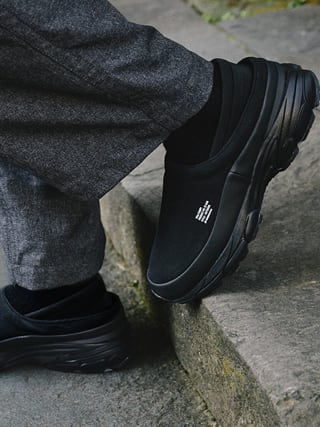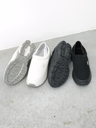 プロユースからデイリーユースに再構築する中で浮かび上がってきた”日々にちょうどいい”といった要素に着目し新しいスタイルを提案。シーズンリミテッドとして展開した「CAMPI」をベースにシルエットを見直しフィット性に優れた構造、防滑ラバーを採用しグリップ力の優れたソールにブラッシュアップ。汚れ易い甲部分をカバーしながら、踵を踏んでも履くことが可能なキックバック仕様のモックタイプ。