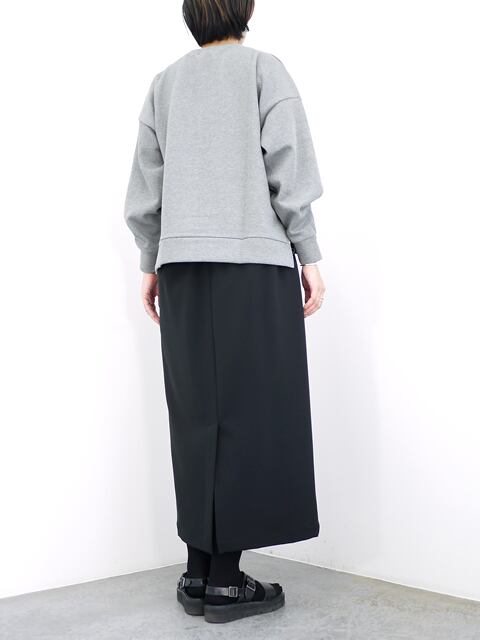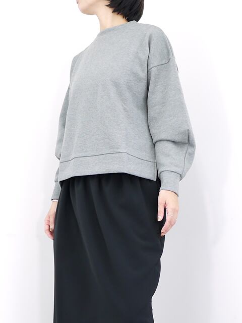 ボリュームのある袖が特徴のプルオーバー。表はリブ、裏はフラットな目面のダブルフェイス組織で程よい肉感とハリ感のある素材を使用。前後差のあるヘムラインにサイドスリットが入ったデザインです。