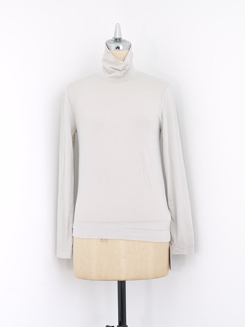 とても柔らかで着心地の良いベア天竺を使用したタートルネックプルオーバー。セルロースにコットンをブレンドする事により、なめらかで柔らかい風合いを実現しています。ネック周りは軽い仕上がりに。ニットやスウェット、ジャケットなどのインナーとしておすすめの一枚です。
