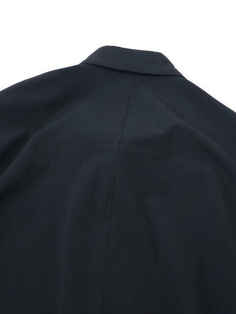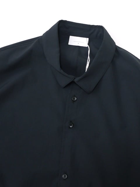 ポリエステルを平織りしたタイプライター生地を使用した襟付きシャツ。薄手でハリがあり、軽く爽やかな雰囲気の生地感が特徴です。光沢を抑えた落ち着いた表情でナチュラルな風合いをお楽しみいただけます。程よくゆったりとしたサイズ感でお使いいただきやすい一着です。