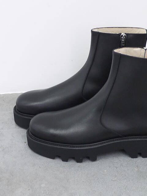 繊細で印象的なジップ使いと脱ぎ履きのしやすさもうれしいサイドジップブーツ。無駄を省くことで素材の良さが引き立ち、スタイリッシュなラインを強調。適度な収縮性を持つエラスティックが柔らかく足首を包み、足なじみの良い履き心地を生みます。ソールには軽量かつ屈曲性に優れたイタリアVibram社製のTWEETY SOLEを採用。