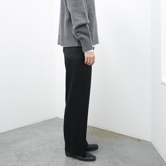 素材の上品さを楽しめるイージーパンツ。イージーな履き心地ながら、キレイ見えする生地感とフォルムです。後ろポケットを付けてきちんと感を出しつつ、全体的には素材の印象に合わせてディテールは削ぎ落とし、ミニマルにまとめています。カジュアルなアイテムと合わせて雰囲気の出る一本です。