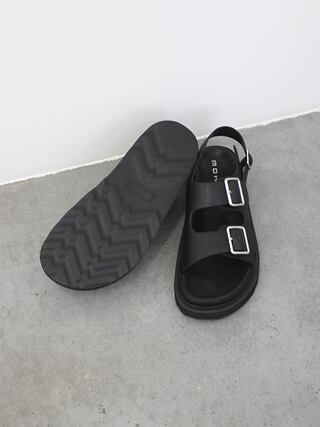 柔らかな履き心地のバックルサンダル。バックストラップが付いたことにより安定した歩行が可能に。少し丸みのあるシルエットが女性らしい印象です。厚みのあるソールなどボリューム感のあるシルエットで、装いが軽くなるシーズンにアクセントをプラスしてくれるアイテムです。高級感のあるシボ革を使用、ベルトバックルの内側にはゴムが取り付けてあり、ベルトを外さずに着脱していただけます。