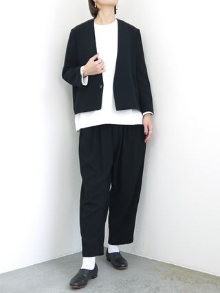 極細番手のアセテートとポリエステルを織り交ぜた、奥行きのある色合いの生地感が魅力のショート丈ジャケット。ドライな肌触りとシワになりにくい素材感は、シーズンを問わずにお使いいただける快適な着心地。適度な落ち感に加え、ストレスを感じない軽さも魅力の一つです。フロントにスナップボタンが1つだけついたシンプルな作り。フォーマルシーンにも普段使いにもお使いいただけます。同素材のパンツとのセットアップスタイルにも。