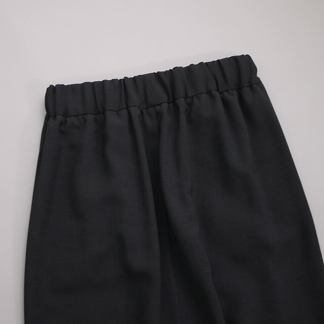 トップ調に見えるシックアンドシンの強撚のポリエステル糸を使用したカルゼ織りの生地。強撚としてはシャリ感も少なく、ナチュラル感を出すSY加工をいれることで落ち感と膨らみを足して、程よく柔らかさを持ち合わせた生地に仕上げています。腰周りは程よくゆったりと。ゆったりとしながらもすっきりと見える秀逸なデザインです。シーズンを問わずにお使いいただきやすいスカートです。