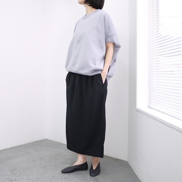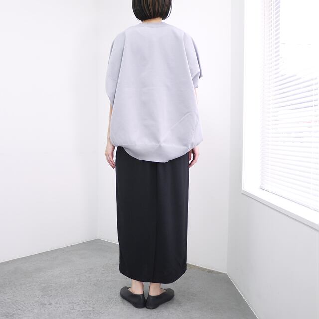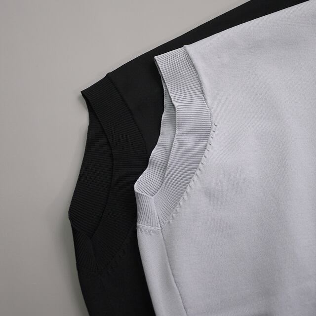 光沢のあるポリエステル糸を度詰めに編み立てたクルーネックコクーンベスト。コクーンのシルエットが印象的で、半袖でそのまま着ても、またレイヤードスタイルにも使い勝手のよいデザインです。シャツやカットソー、ワンピースとなど、色々なアイテムとのレイヤードで季節を通して長く愛用していただけます。