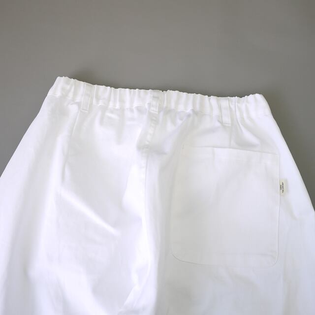 イージー仕様のワークトラウザーズ。前身頃はL字型ポケット、後ろ身頃には右側だけパッチポケットといったシンプルな仕様に仕上げられています。パッチポケットにはブランドタグを配置。程よいボリューム感でどんなトップスにも相性よく合わせていただける一本です。